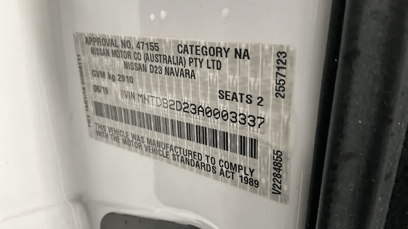 - Roadworthy Certificate N/A